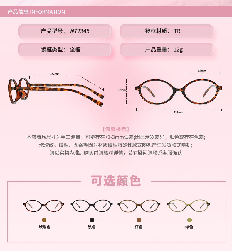 镜架镜片质保一年只换不修尺寸: