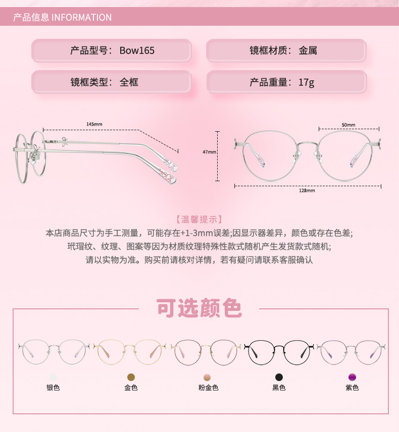 镜架镜片质保一年只换不修尺寸: