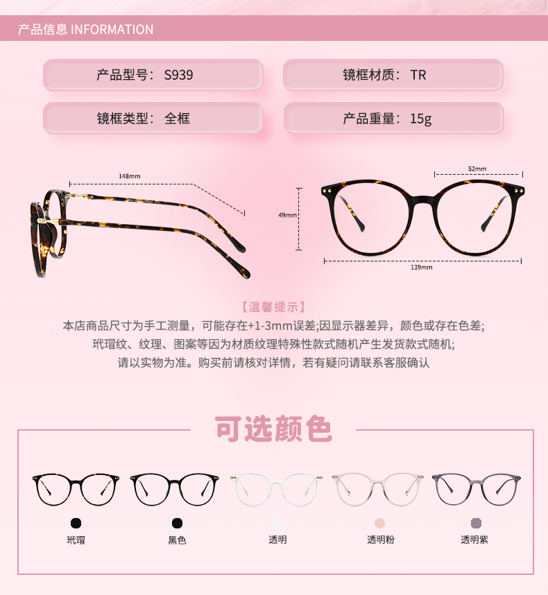 镜架镜片质保一年只换不修尺寸: